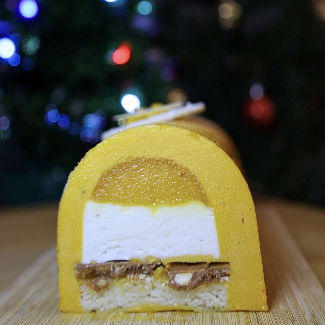 Découvrez notre bûche d'évasion qui célèbre la douceur tropicale. La bûche Coco – Mangue est une création texturée et intensément fruitée, idéale pour une fin de repas toute en fraîcheur et en légèreté.