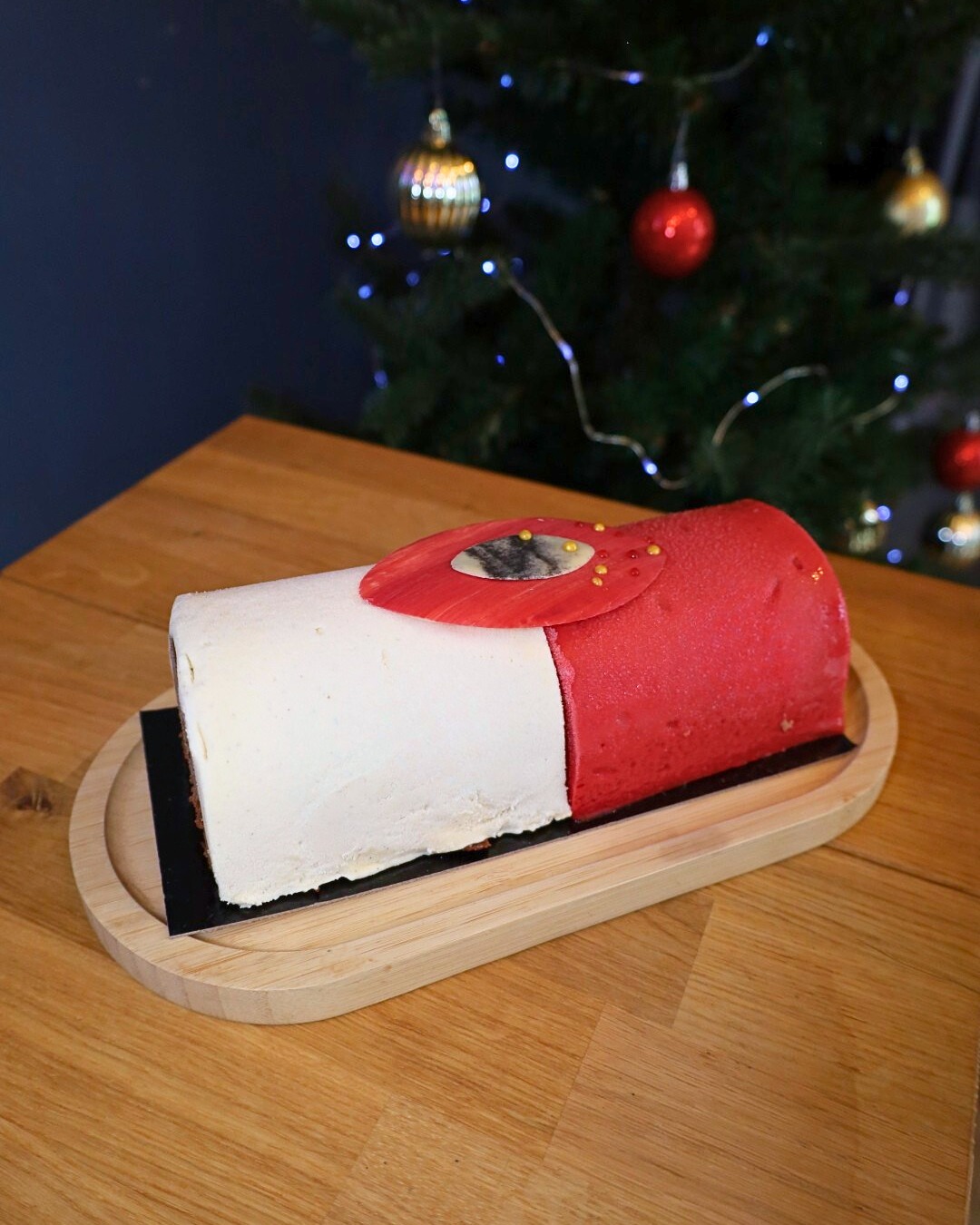 Imaginée par Rémi chez MEZIA, cette bûche d'excellence est naturellement sans gluten et sans lactose. C'est un mariage d'une finesse incomparable entre les fruits rouges acidulés et la douceur florale du litchi, parfait pour terminer votre repas sur une note aérienne.